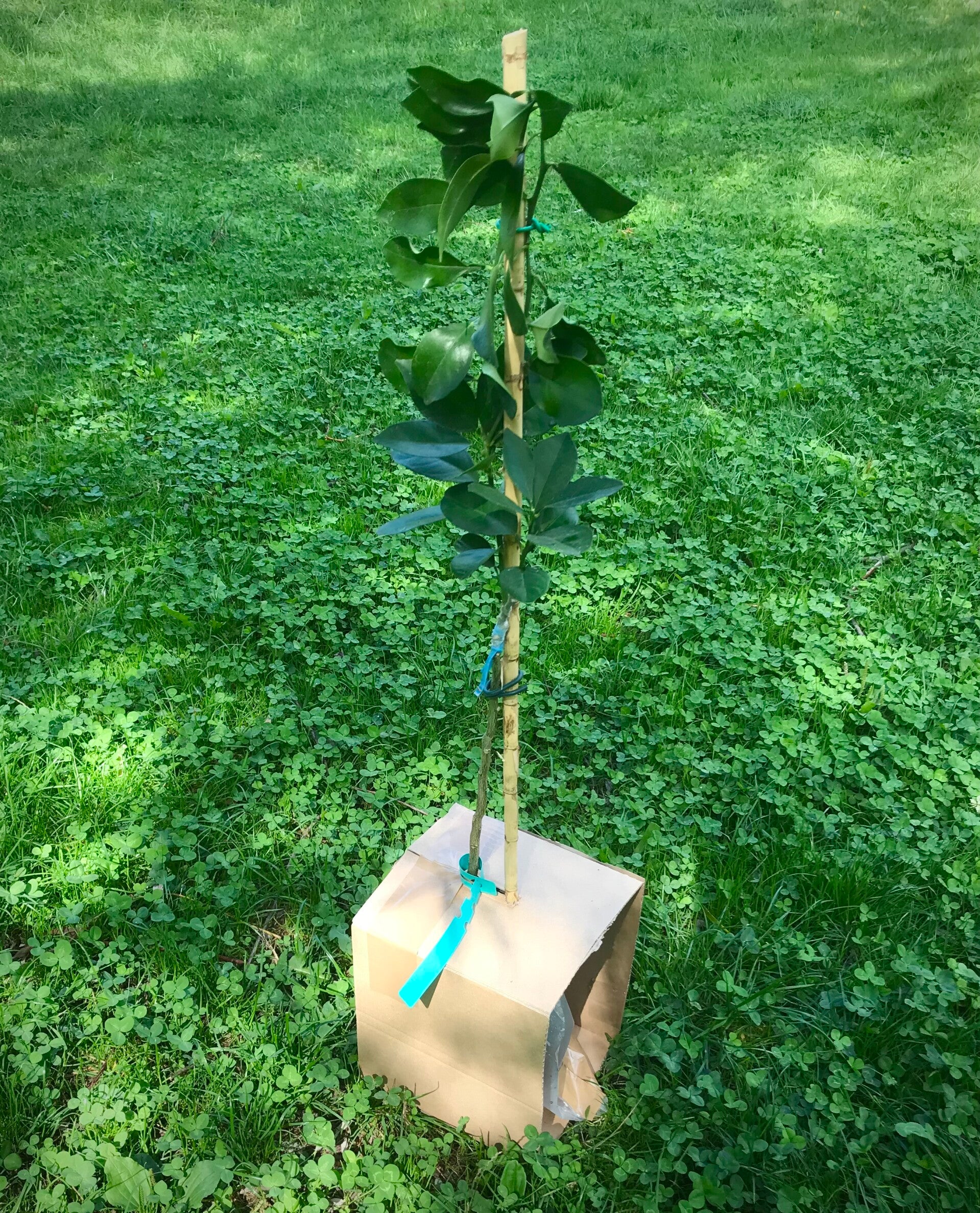 Sac autour du pot pour éviter le dessèchement et que l’humidité endommage le carton.
