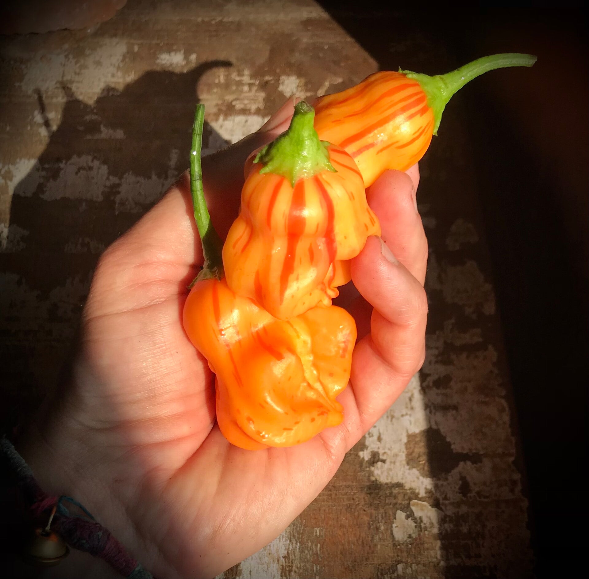 Marqué de magnifique zébrures rouge sur fond orange ce piment généreux sera très vite adopté. Très productif et facile à cultiver. La partie extérieur du fruit et douce et piquante au niveau du placenta.