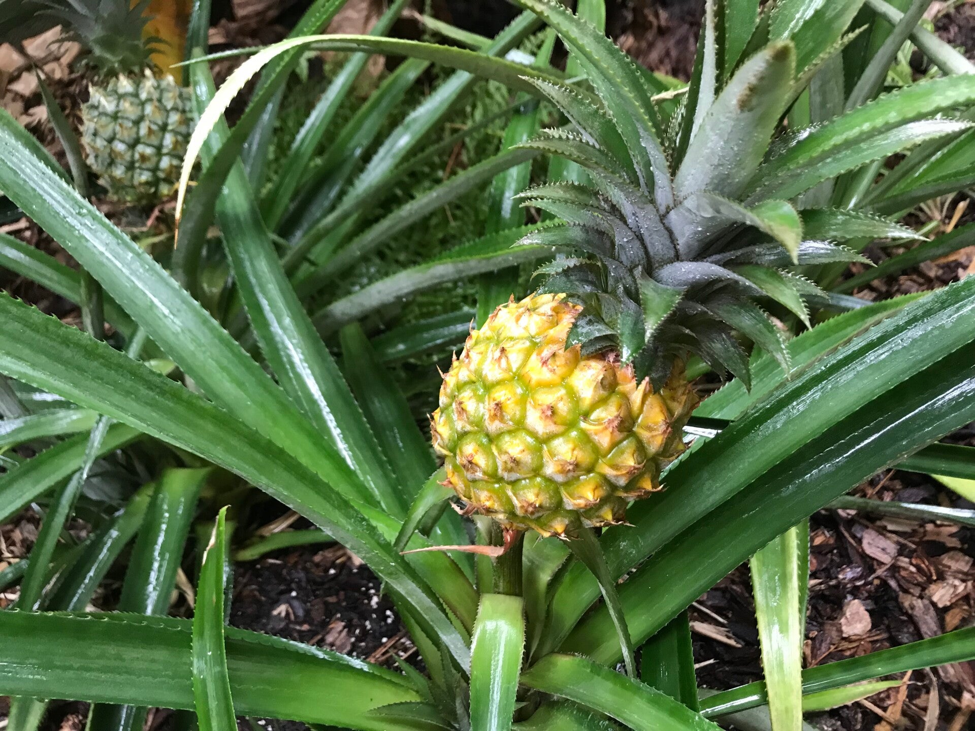Une très belle variété antillaise que l'on trouve beaucoup sur les marchés de Guadeloupe. Un fruit de 1kg à 1,5kg en moyenne. Ressemblant physiquement beaucoup au Victoria mais légèrement plus gros et un parfum différent. Mature 4 mois et demi après la mise à fleurs. Armé de piquants et prêt à lancer en floraison (induction florale, détaille sur la page "notre sélection d'ananas") au bout de 30 feuilles minimum pour qu'il soit capable de porter un fruit de taille correcte . Nous l'avons également testé en 2023 /2024 sur des passages dans le négatif en atmosphère sèche jusqu'à -4 sur trois passages consécutifs. Le résultat a été un arrêt végétatif comme le Victoria, avec jaunissement et rougissement du feuillage et redémarrage lent en mai, jusqu'à retrouver un feuillage complètement normal en juillet.