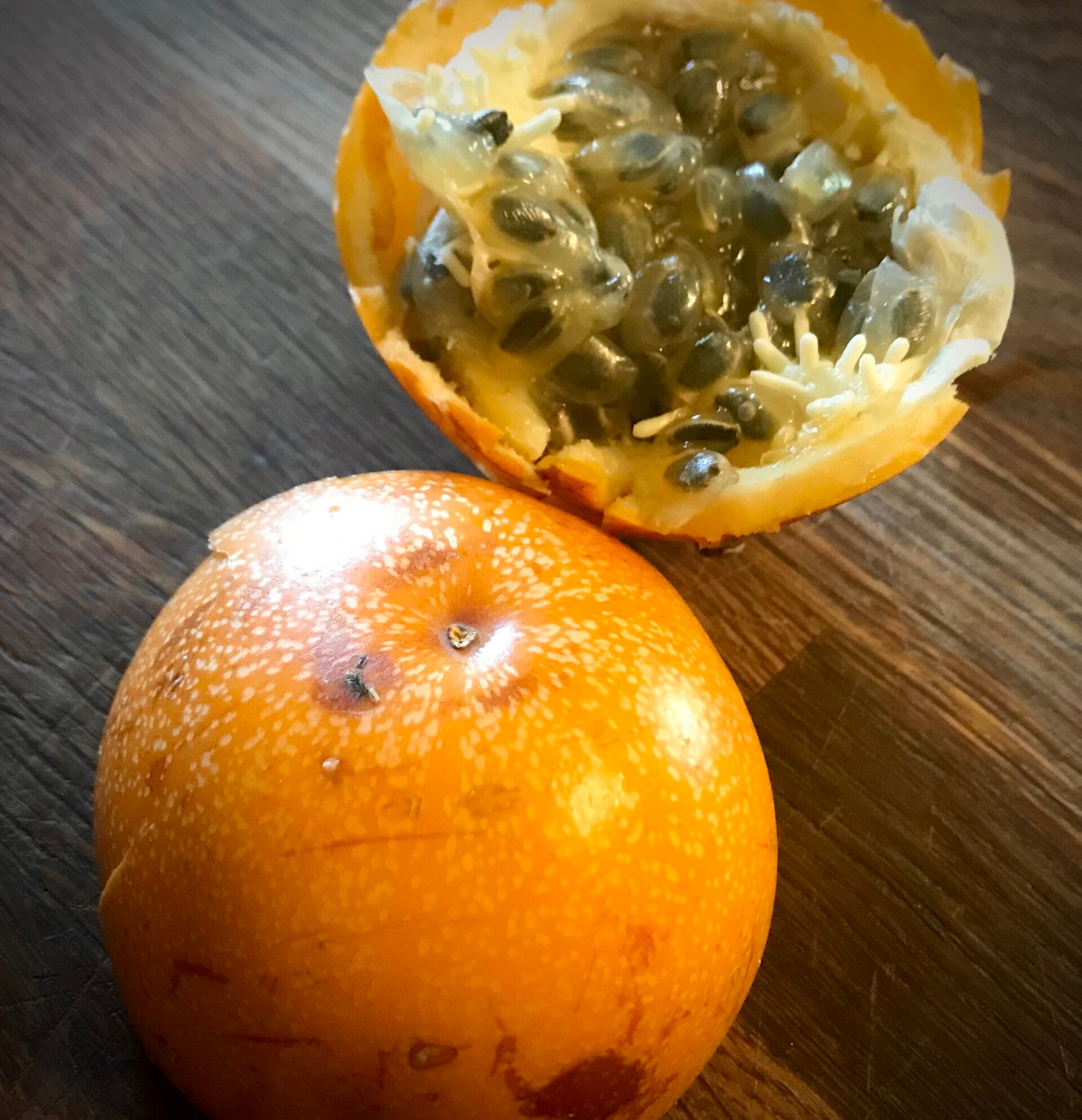 Voici la grenadelle. Réservée aux collectionneurs et jardiniers avertis, cette passiflore est réputée difficile à cultiver et encore plus à faire fleurir. En effet sa production demande un climat constant avec des températures homogènes. Originaire des montagnes des Andes, où elle pousse entre 1700 et 2600 mètres d'altitude, elle est très cultivée en Colombie ainsi qu'à la Réunion. Elle a besoin de températures entre 22 et 26° pour fleurir, pas plus, pas moins. Néanmoins la récompense au bout et un fruit d'une saveur inégalée, sucré, sans une touche d'acidité.